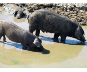 La explotación porcina en la dehesa, en la que se engordan los animales a base de pastos y montanera, es decir, mediante bellotas de encinas, alcornoques y quejigos, condiciona que los cerdos se vean expuestos continuamente a múltiples factores medioambientales que favorecen la diseminación de patógenos y sobre los cuales resulta muy difícil actuar. En este tipo de producción extensiva tiene mucha influencia el estrecho contacto de los cerdos entre sí y con otras especies, y es frecuente la presencia de animales domésticos, roedores, e incluso animales salvajes como jabalíes, zorros o aves rapaces, posibles portadores de salmonela u otros microorganismos patógenos.