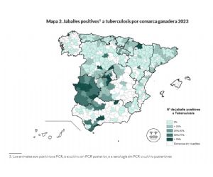 A partir de estos resultados el propio informe indica que “las positividades encontradas en jabalíes en algunas zonas indican que los jabalíes tienen un papel importante en la transmisión de la tuberculosis al ganado doméstico en esas zonas”, conclusión que también establece para los cérvidos, con una positividad total a nivel estatal del 17,15%, donde de nuevo las comarcas en peor situación se concentran en el suroeste peninsular.